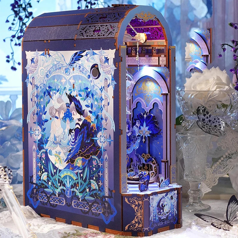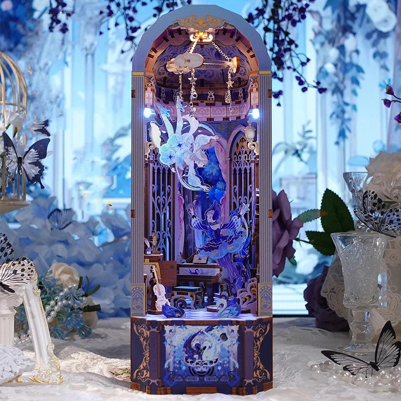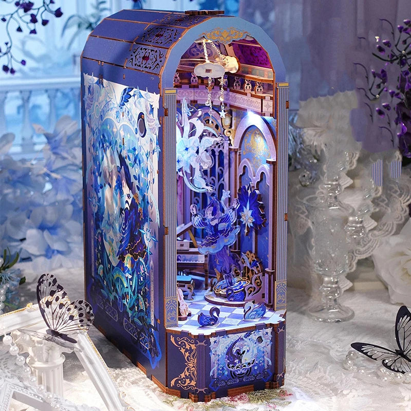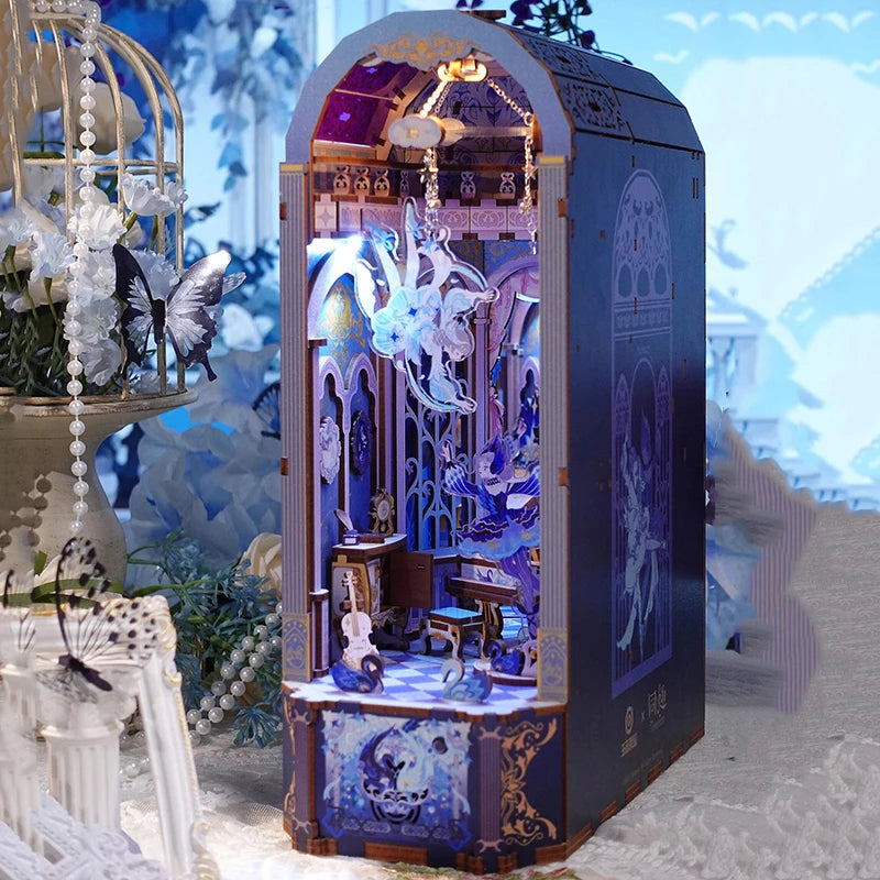 Xiao'qiao Dream - DIY Wooden Book Nook Shelf Insert Kits Miniature Bookends Bookshelf Dollhouse