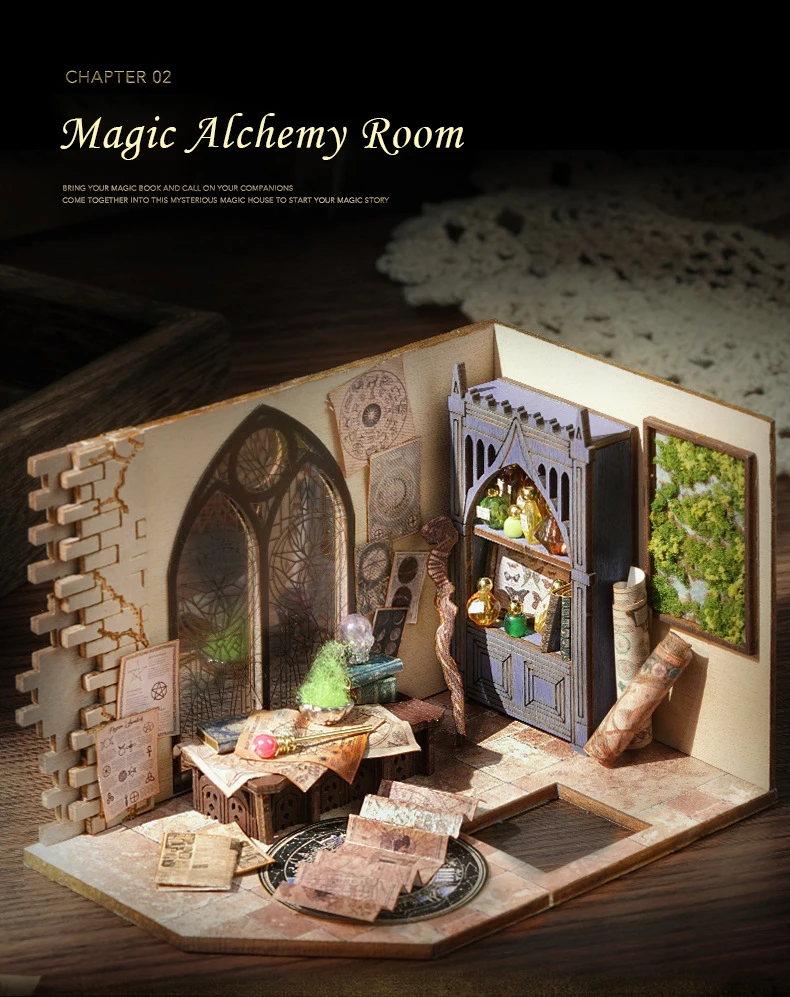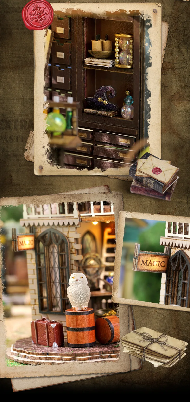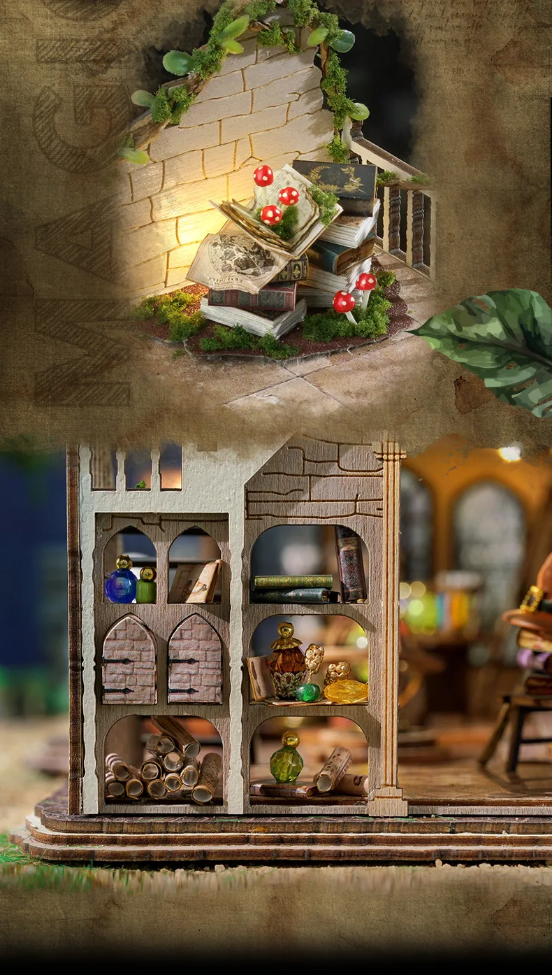 Magic Academy Miniature Dollhouse Kit with Furniture Led Lights