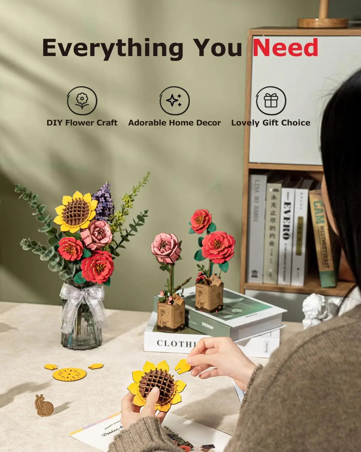 [Easy and Fun Assembly]: Designed for easy and enjoyable assembly, these wooden flower building sets come with comprehensive instructions for a hassle-free experience.